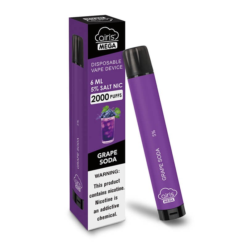 The Airis Mega disposable pod device is powered by a 1050mAh built-in battery and contains 6ml of pre-filled tasty e-liquid. Plus the 1.8ohm coil in the Airis Mega will bring you more than 2000 puffs for a awesome vaping experience. Check out our collection of disposable vape bundles.