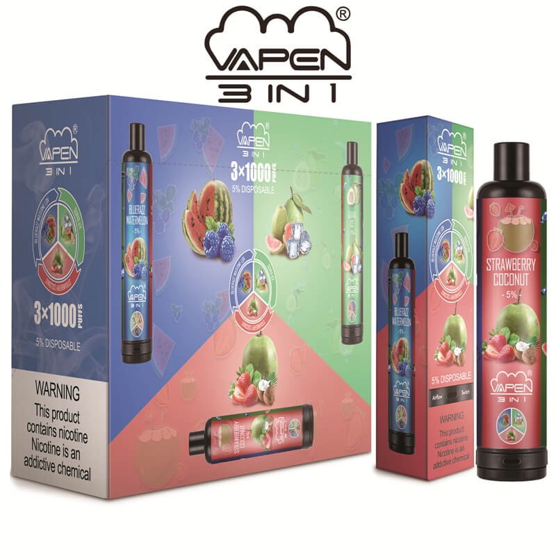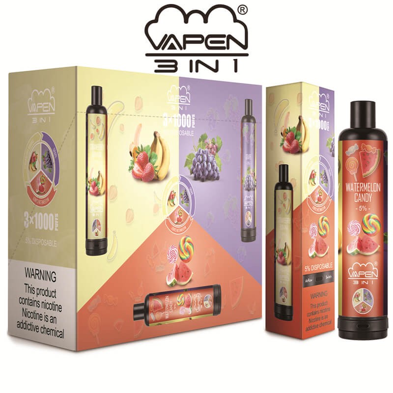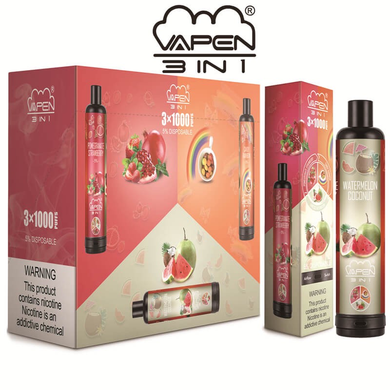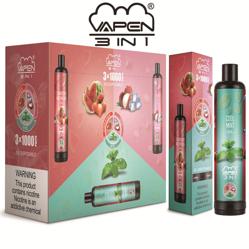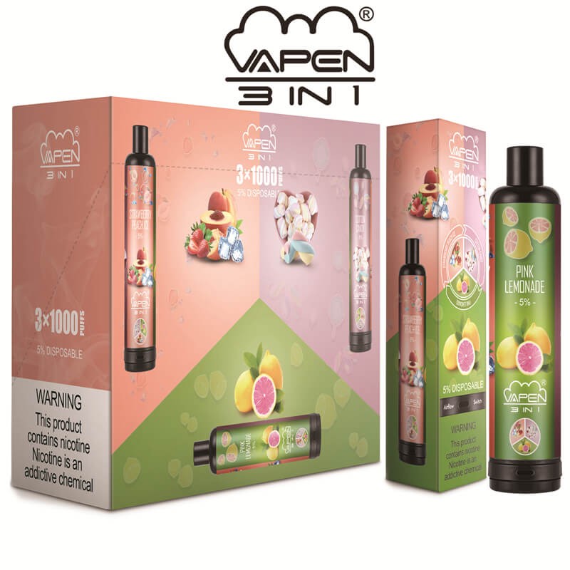 Authentic VAPEN 3IN1 3 in 1 3*1000 Puffs Disposable Vape Pen with Bottom Airflow Switch System